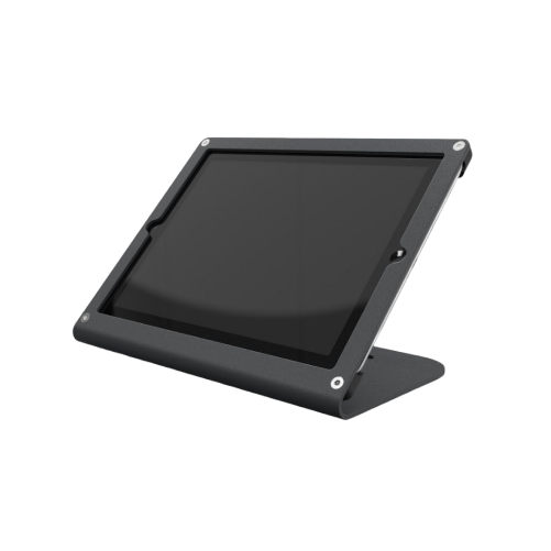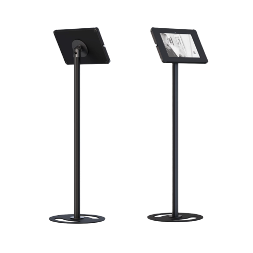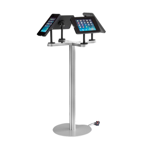 Rent iPad stands from our vast selection to fit specifically to your needs. These includes iPad floor stands, a variety of desktop stands, and quad stands to display multiple iPads. Our selection of iPad stands is easily adjustable and can be secured to the floor or desktops. They have a sleek and stylish outlook that seamlessly blends with your booth but are durable and secure at the same time. Our iPad floor stands come in a range of colors such as silver, black and white, so that you are able to opt for one that speaks to your brand identity more.